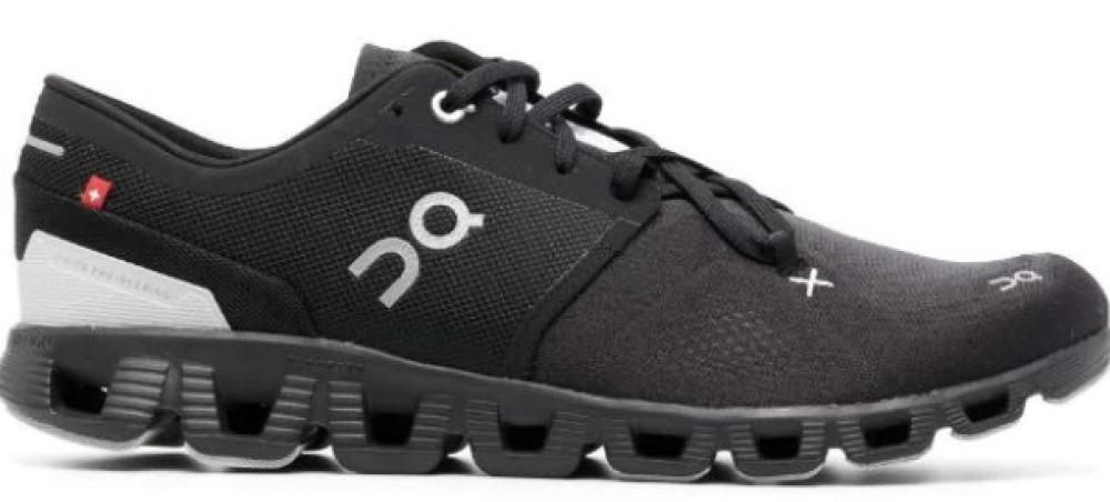 أبيض، أسود، جزء علوي منسوج، طبعة شعار جانبية، غلق برباط أمامي، مقدمة بيضاوية، نعل مطاطي سميك.